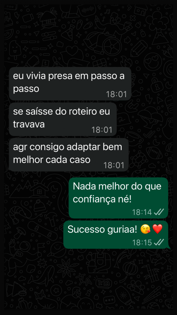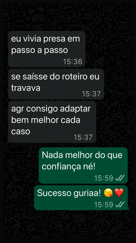 O travamento vem da dúvida. Quando você entende o que está fazendo e por quê, a execução fica muito mais natural e você deixa de depender de roteiro.